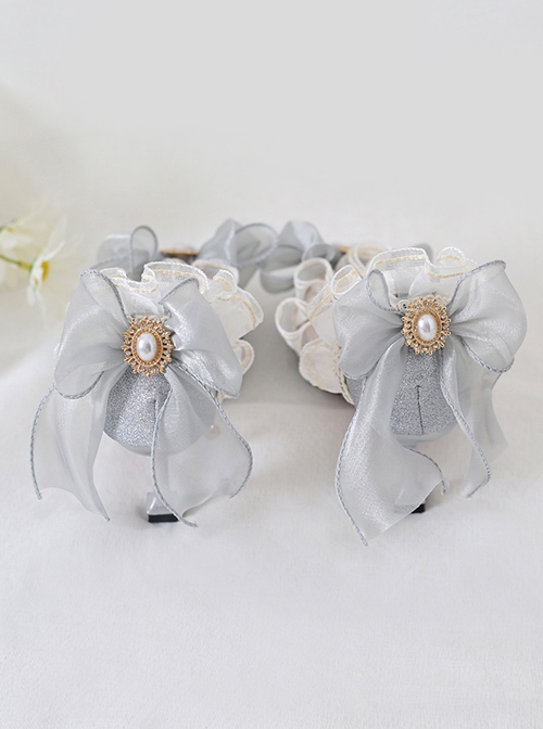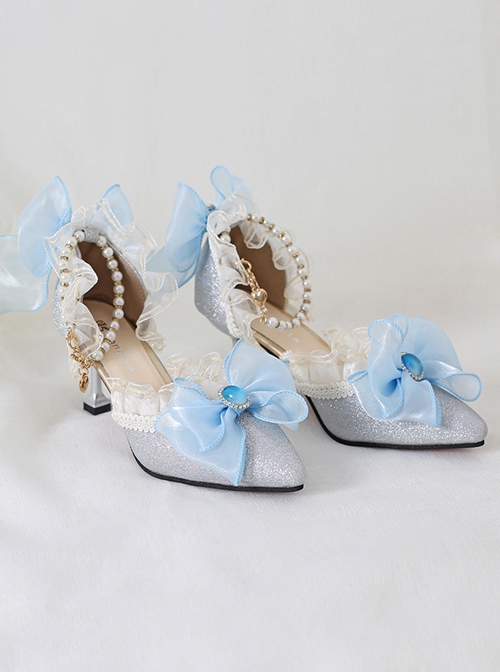 Elegant Palace Style Pointed Ribbon Bowknot Gemstone Decoration Bead Chain Classic Lolita Shoes