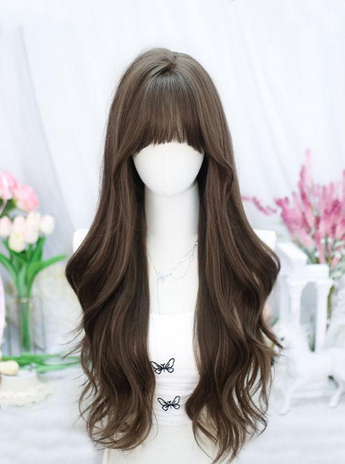 Elegant Versatile Long Curly Hair Straight Bangs Classic Lolita Daily Commute Full Head Wig