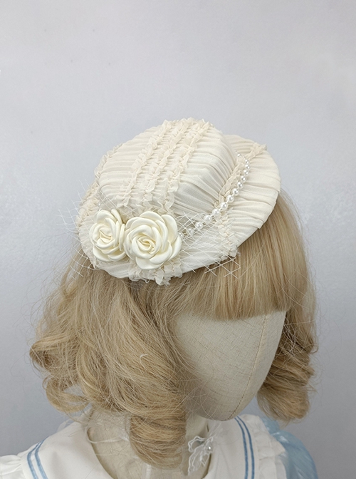 Elegant Vintage Apricot Rose French Noble Lady Hair Accessory Lace Mesh Pearl Texture Classic Lolita Hat