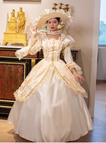 Retro Red Long Golden Lace Embroidery Festival Party Lolita Prom Long Sleeve Dress
