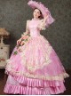 Spring Gentle Pink Hollow Out Mid-length Puff Sleeve Lace Pearls Embroidered Flowers Classical Lolita Prom Dress