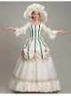 White Long Green Vertical Stripe Decoration Puff Long Sleeve Royal Dinner Annual Meeting Party Retro Court Lolita Prom Dress