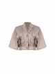 Explorer Series Khaki Steampunk Rivet Loose Cropped Safari V Neck Workwear Jacket Shirt