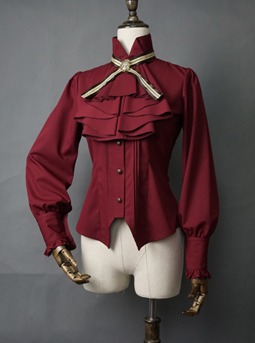 Explorers Series Pure Color Lapel Bow Tie Gothic Lolita Long Sleeve Blouses