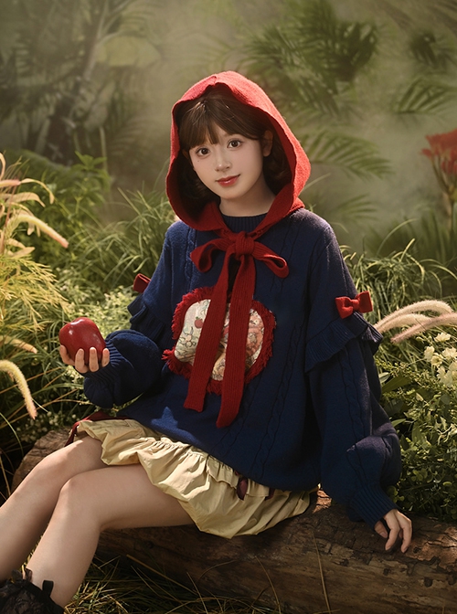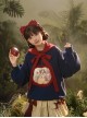 Fall Winter Navy Blue Fairy Tale Style Cute Cartoon Illustration Kawaii Fashion Lantern Sleeves Hooded Sweater