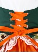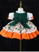 Floral-Print Pleated Lace Hem Cross-Strap Vest Design Lace Doll Neckline Classic Lolita Kid Orange Dress
