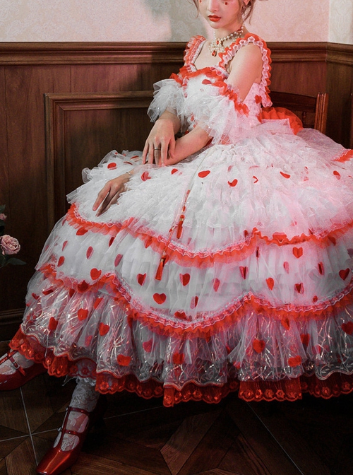 Gorgeous heavy style, rose petal decoration, red and white color scheme, elegant and gorgeous layered skirt, sleeveless classic Lolita dress.