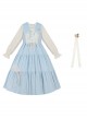 Flowers In The Mist Series Spring Fake Two Piece Light Blue Elegant Navy Style Long Sleeved Lolita Dress