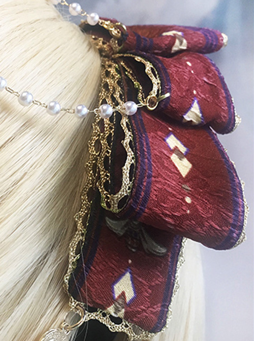 Fog-moon And Crown Series Bowknot Elegance KC Classic Lolita Headband With Detachable Pearl