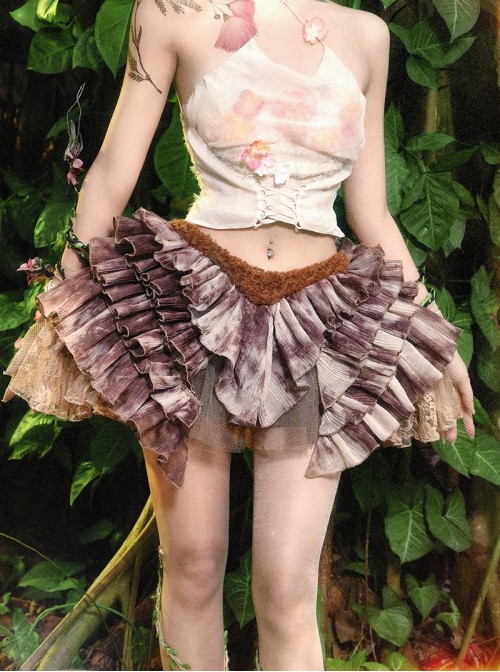This Forest Spirit Series kawaii fashion skirt is made from lightweight chiffon with delicate pleats for a fluffy and airy feel.