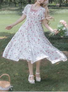 Forget Worry Chrysanthemum Series JSK Woven Cotton Flower Embroidery Patchwork Lace Classic Lolita Sleeveless Dress Set