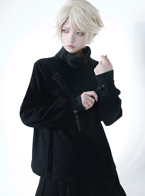 Functional Rabbit Series Ouji Fashion Cute Handsome Unique Asymmetric Stretch Strap Gothic Black Sweatshirt