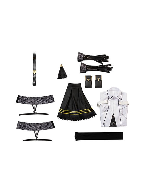 Include: Top, Skirt, Neck Ornament, Gloves*2, Belt+Waist Bags*2, Thigh Straps*2, Socks*2