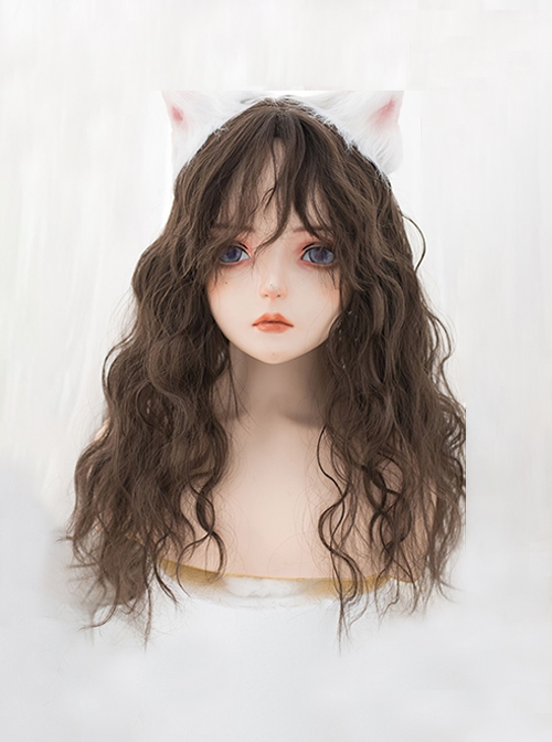 Girly Lively Fluffy Wool Curly Air Bangs Long Hair Dark Brown Daily Versatile Sweet Lolita Full Head Wig