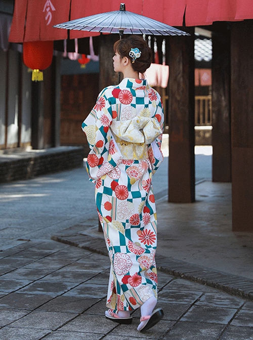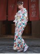 Gorgeous Chrysanthemum Sakura Blocks Print Japanese Style Elegant Bathrobe Kawaii Fashion Improved Kimono