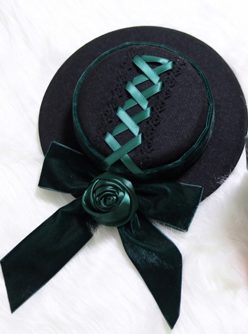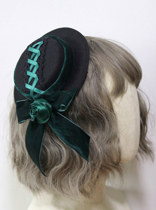 Gothic Dark Green Velvet Bow-Knot Rose Retro Gothic Lolita Small Topper Hairpin