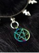 Gothic Metal Rivets Magic Pentagram Black PU Halloween Gothic Lolita Necklace