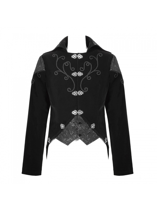 Gothic Retro Velvet Stitching Jacquard Chest Handmade Three Dimensional Embroidery Black Retro Fake Two Piece Coat