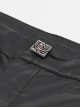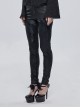 Gothic Sexy Lace Fabric Center Front Metal Rose Button Black Leather Pants