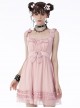 Gothic Style Cute Bowknot Ruffle Decoration Light Mesh Cross Strap Sweet Pink Suspender Dress