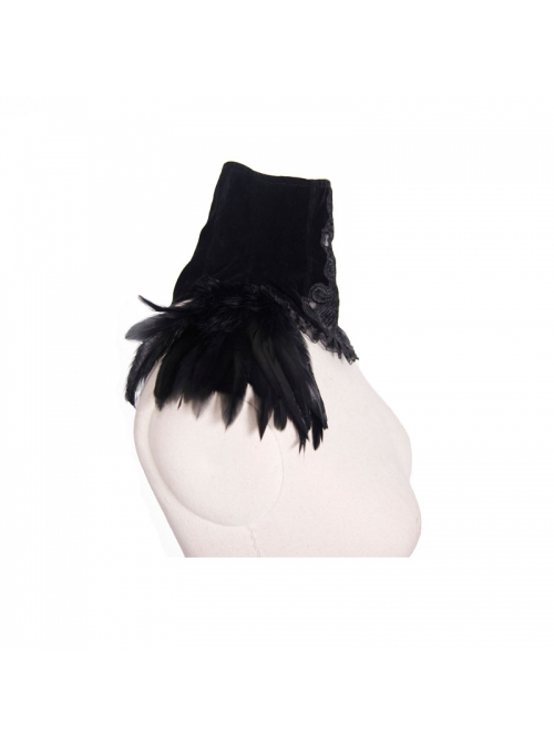 Gothic Style Elegant And Comfortable Weft Velvet Front Center Lace Embroidery Side Feather Decoration Black Gorgeous Neckband