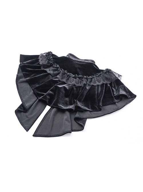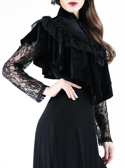 Gothic Style Elegant Lace Stitching Rose Flower Decoration Chinese Stand Collar Button Design Black Velvet Cloak