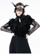 Gothic Style Elegant Lapel Delicate Lace Shoulder Drawstrings Vintage Light Black Long Sleeves Shirt