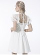 Gothic Style Elegant Square Collar Pearl Cross Embellished Backless Lace Suspender White Cotton Short Dress