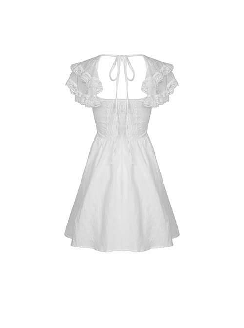 Angelic Beauty White Cross Chest Square Neck Mini Dress