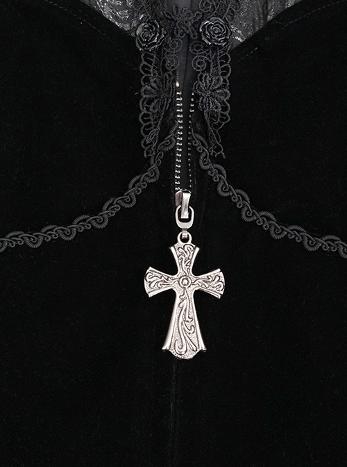 Gothic Style Exquisite Applique Hollow With Bat Wing Spiked Hem Black Vintage Long Sleeve Jacket