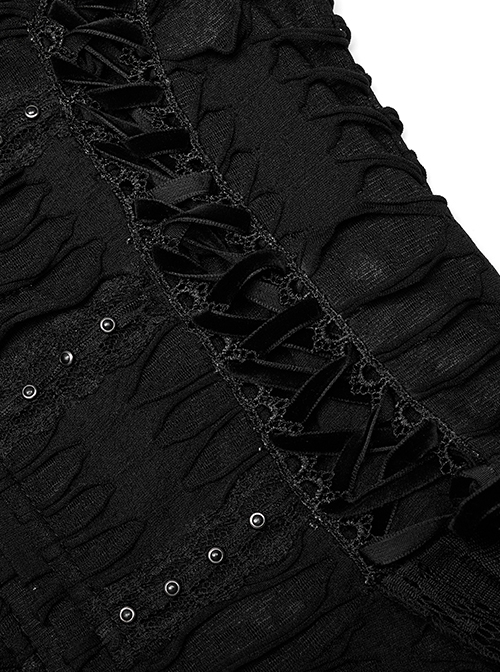 Gothic Style Exquisite Rivet Velvet Drawstring Decoration Mysterious Witch Black Trumpet Sleeves Hooded Coat