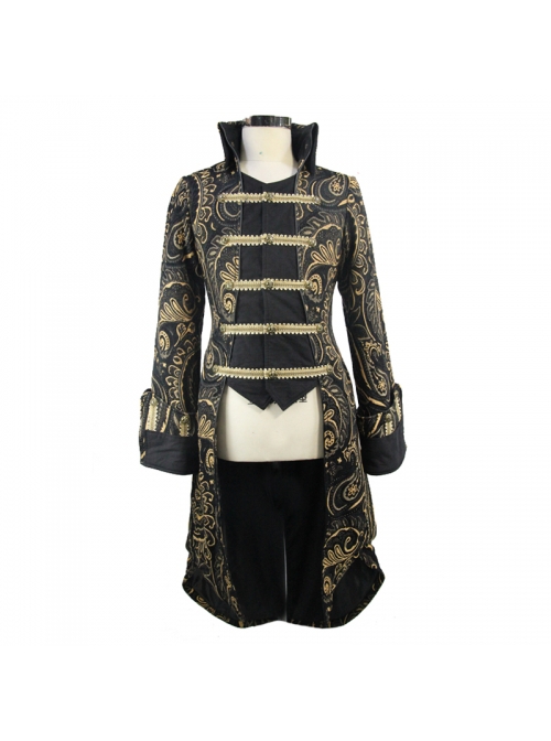 Gothic Style Elegant Velvet Collar Embroidery With Exquisite Carved Buttons Black Swallowtail Jacket