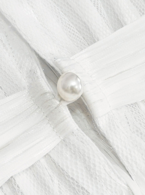 Gothic Style Light Pleated Braided Material Metal Buckle Gem Pendant Mesh Hem White Personalized Hard Mesh Collar