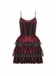 Gothic Style Luxury Velvet Chest Lace Buttons Decorated Multi Layer Hem Red Suspender Cake Dress