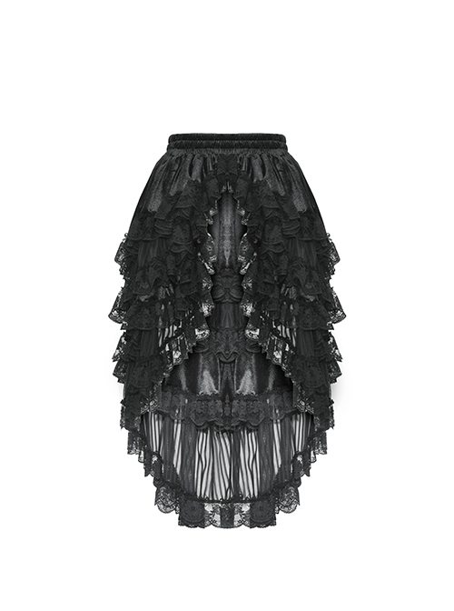 Gothic Style Luxury Velvet Exquisite Layered Mesh Lace Ruffle Elastic Waist Elegant Black Princess Skirt