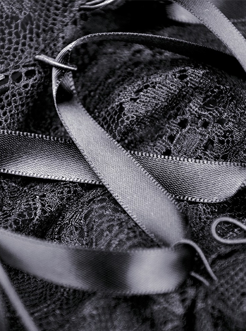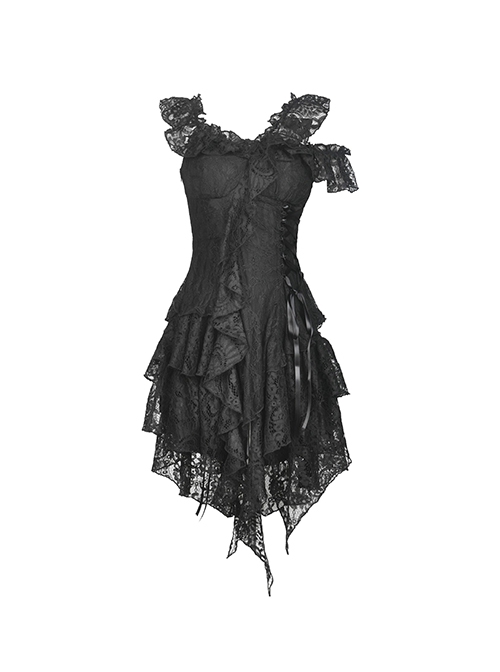 Gothic Style Off Shoulder Irregular Lace Hem Drawstring Waist Retro Gorgeous Black Suspender Dress