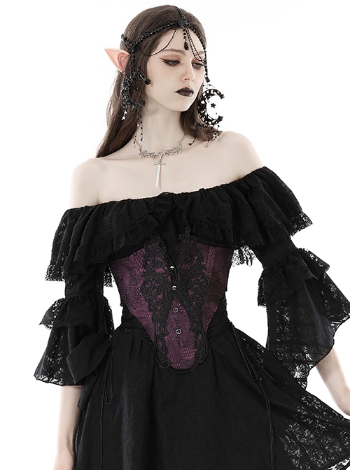 Gothic Style Palace Retro Embroidery Lace Decoration Both Sides Sexy Hollow Straps Purple Gorgeous Corset