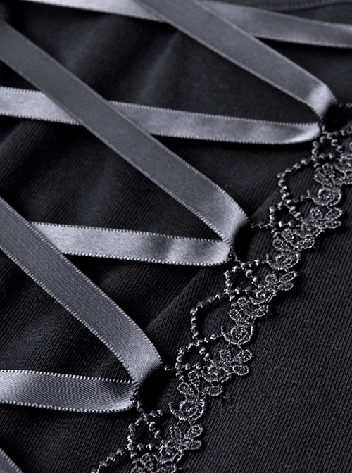 Black lolita lace up halter dress with necklace design