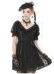 Gothic Style Retro Palace V-Neck Lace Frill Elegant Black Puff Sleeves Slim Short Dress