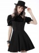 Gothic Style Ribbon Bow Retro Palace Style Bowknot Tie Black Halter Neck Puff Sleeves Mini Dress
