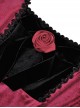 Gothic Style Romantic Velvet Rose Brooch Lace Stitching Burgundy Retro Puff Sleeves Slim Dress