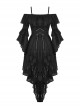 Gothic Style Sexy Suspender One Shoulder Lace Ruffled Black Half Sleeves Elegant Long Tail Dress