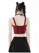 Gothic Style Silver Metal Round Rivet Ribbon Lace Decoration Stretch Black And Red Tight Suspender Top