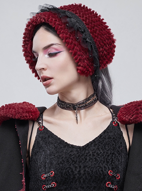 Gothic Style Soft Grain Plush With Detachable Lace Tie Red Velvet Scarf