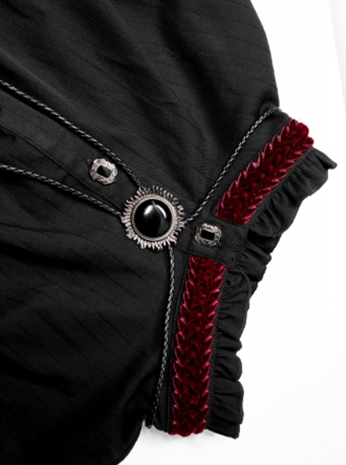 Gothic Style Stand Collar Classical Picture Frame Button Red Ribbon Decoration Vintage Black Lantern Sleeve Shirt