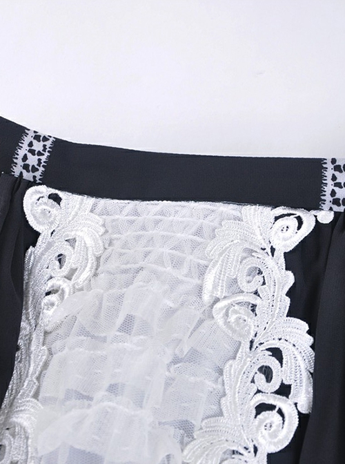 Gothic Style Unique Retro Print Stitching White Lace Elegant Black And White Skirt
