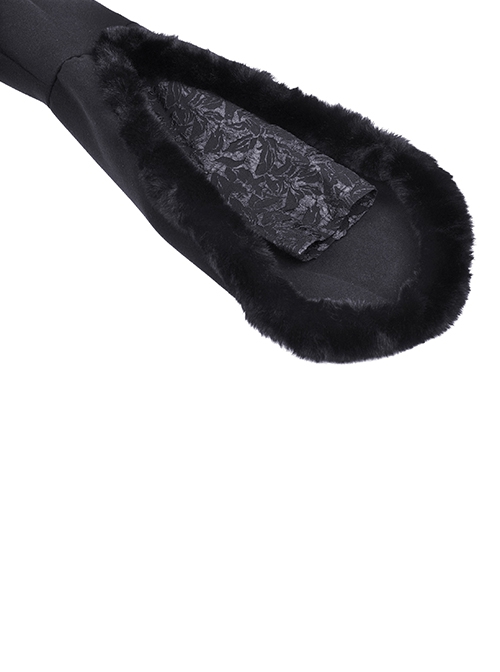 Gothic Style Witch Detachable Plush Trimmed Hat Delicate Lapels Elegant Black Warm Wool Coat