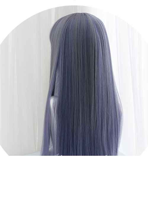 Gray Purple Mixed Gradient Sweet Lolita Long Straight Wigs