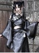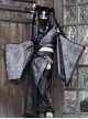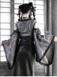 Grey Black Half Hollow V-Neck Stitching Lace-Up Large Sleeves Halloween Punk Long Sleeve Cropped Top