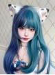 Harajuku Blue Green Gradient Ocean Color Stylish Long Straight Hair Princess Cut Flat Bangs Sweet Lolita Full Head Wig